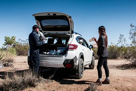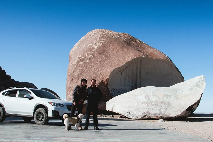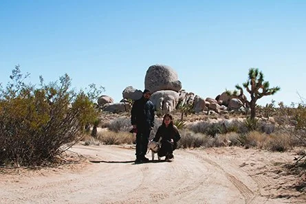 We packed our cooler with 4 hearty pb&j on whole wheat, a bottle of Ripple Vanilla Pea Milk, Sumo Citrus oranges, extra water, roasted almonds and our pup's food then headed out at 7 A.M. We got into the city of Joshua Tree at 10:15AM and headed straight to the visitor's center to pay our $25 permit (pay here and you can drive straight through without having to wait in line at the park's entrance). We also grabbed ourselves a map because GPS can be iffy inside the park - it is, after all, a dessert!