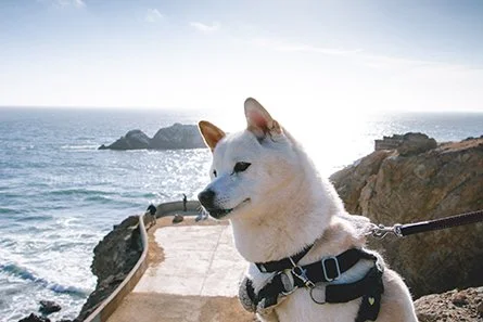 There's a large designated parking area located at Merrie Way. We began our short hike on Land Ends Trail and made a left onto Sutro Baths Upper Trail. We followed the trail until we reached Point Lobos. This is where we, including the pup, admired the Sutro Baths from afar.